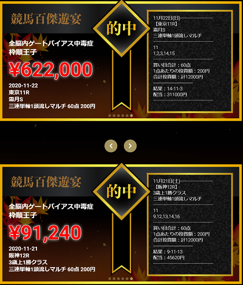 競馬百傑遊宴の正真正銘プロの馬券師たちの情報は質も高く量も豊富です。